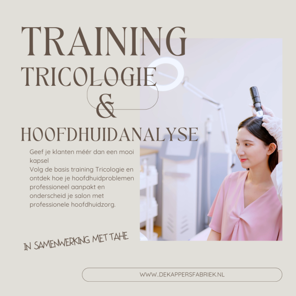 Tricologie is de wetenschappelijke studie van haar en hoofdhuid. Deze basis training geeft jou als kapper de fundamenten om problemen zoals haaruitval, schilfering of irritatie te herkennen en professioneel te behandelen.